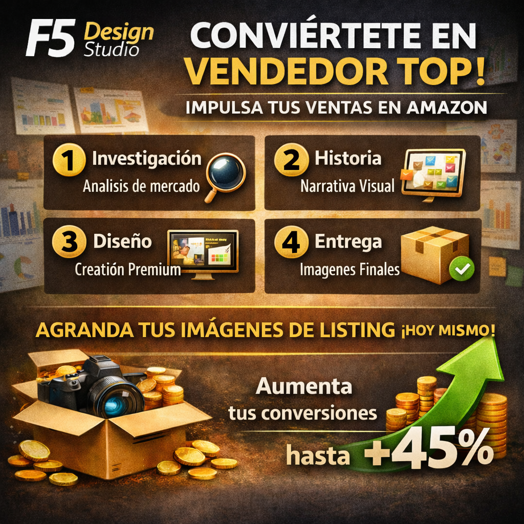 En F5 Design Studio, llevamos más de 15 años trabajando con vendedores de alto rendimiento en Amazon, en múltiples nichos.