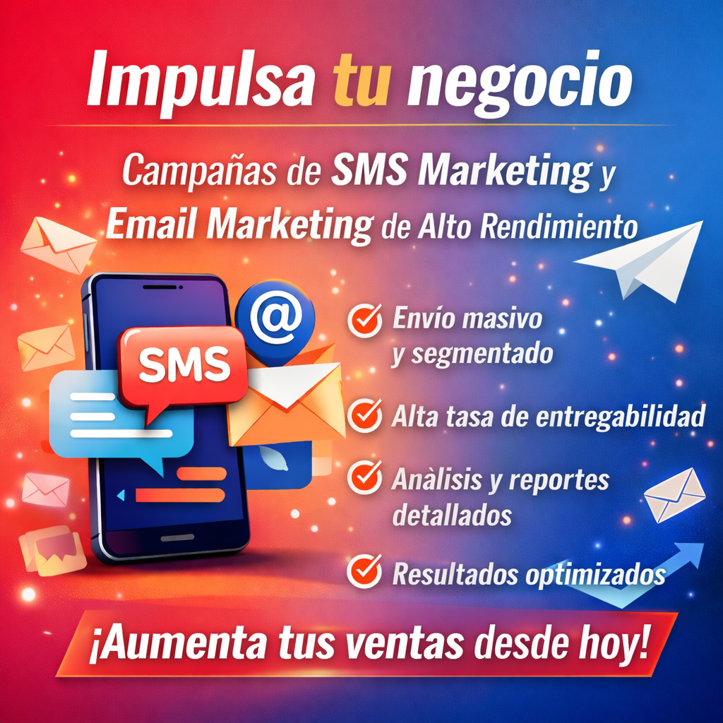 Ayudamos a empresas a lanzar campañas de marketing por SMS de alto rendimiento, permitiéndoles llegar a su audiencia de forma rápida y efectiva. Nuestras soluciones están diseñadas para promocionar sus productos, servicios u ofertas especiales mediante canales de comunicación directos y eficaces.