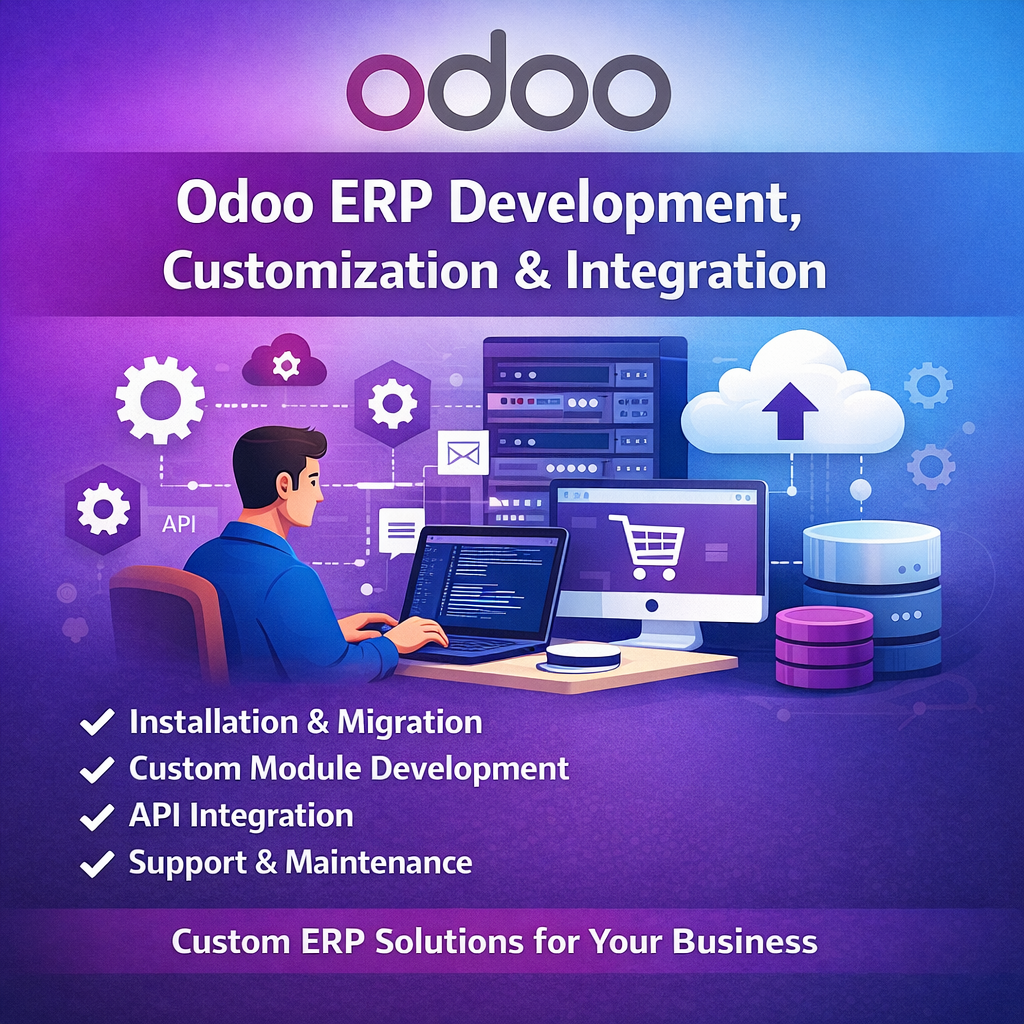 We provide comprehensive **Odoo development and integration services** designed to help businesses streamline operations, automate workflows, and maximize the efficiency of their ERP system.